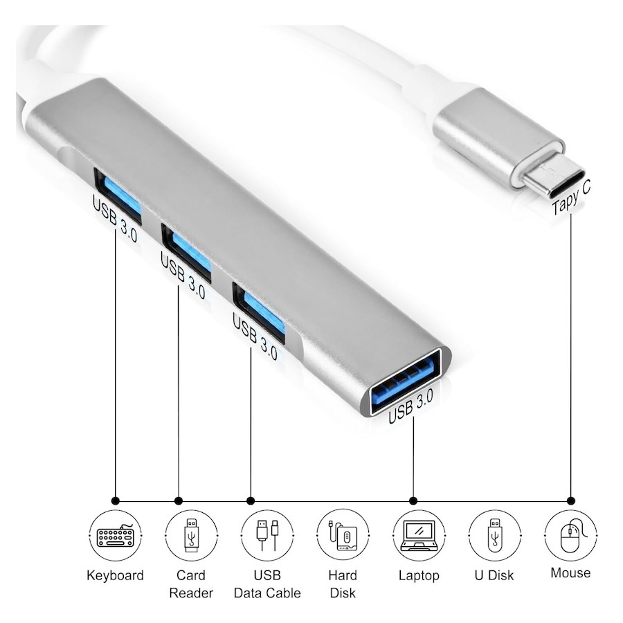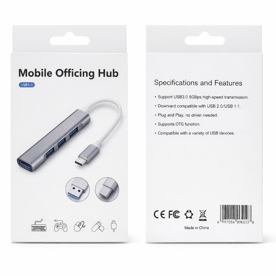 The Mobile Officing Hub transforms a single USB-C port into three USB 3.0 ports, allowing you to connect multiple peripherals at once. Easily attach keyboards, mice, USB flash drives, card readers, and other USB devices to your laptop, tablet, or USB-C smartphone.